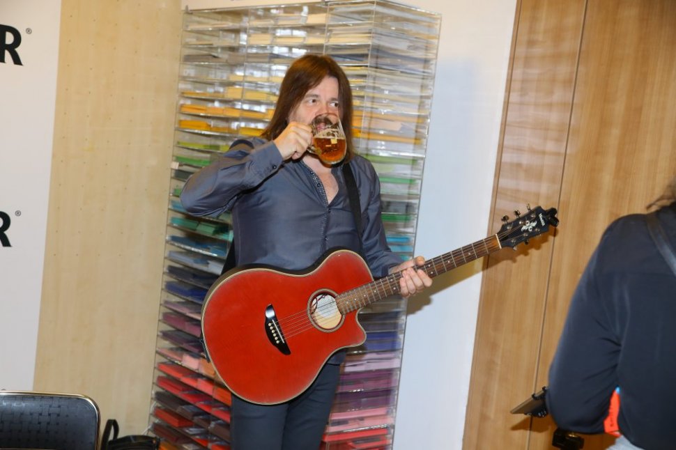Zpěvák Bohouš Josef po delší době vystoupil sólově na veřejnosti. Jen s kytarou zazpíval autorovi knížky nazvané Nohama napřed Borisi Pralovszkému. A posilnil se na to pivem.
