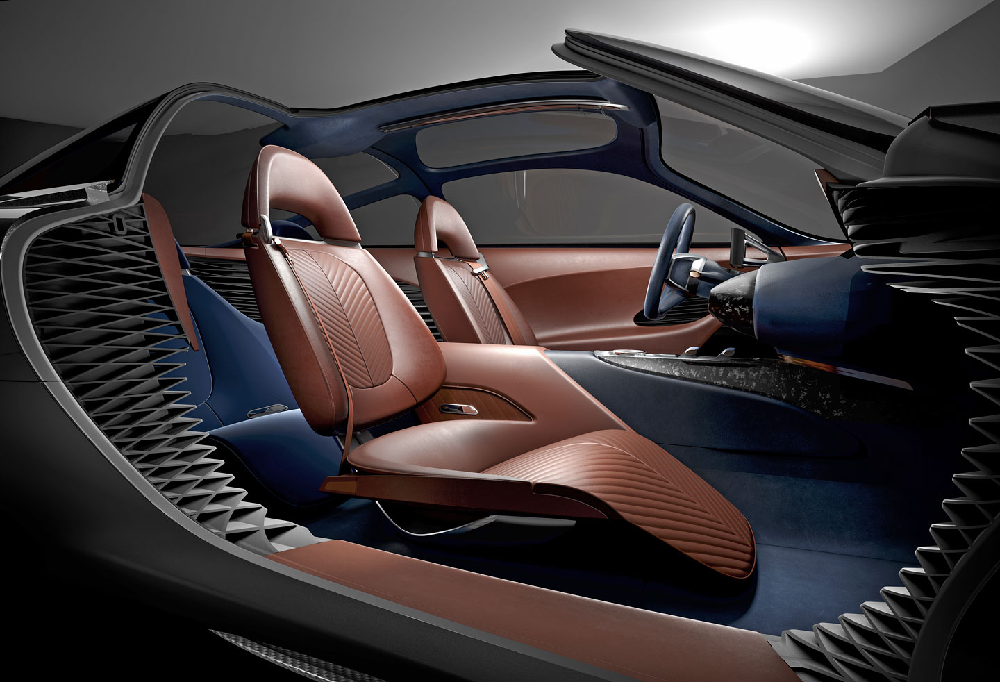 Na první pohledu tu dostává přednost elegance před agresivní vizáží. Dlouhá kapota a vzad usazená kabina, tedy typická silueta pro gran turisima, tu však samozřejmě nechybí. Vpředu najdeme charakteristickou masku, která je navržena pro zajištění maximální aerodynamiky. Kapota je částečně průhledná, světla jsou superúzká a eleganci podtrhuje kombinace šedého laku a bronzových detailů.