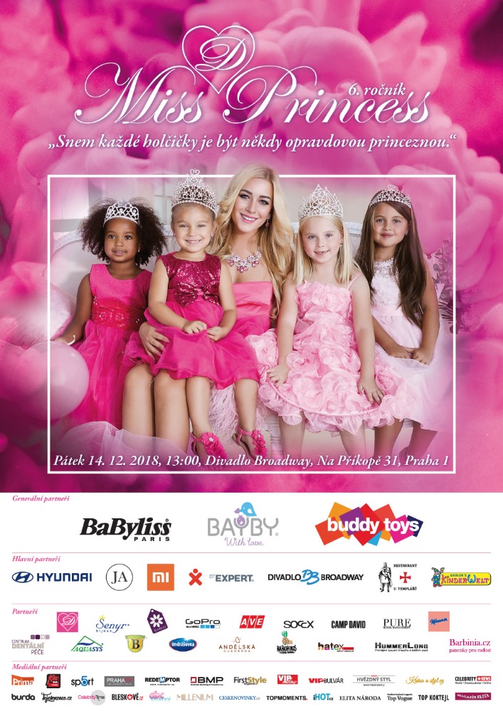 Finále už šestého ročníku Miss Princess je doslova za dveřmi. 14. prosince se v Divadle Broadway představí holčičky od 4 do 11 let, které budou soutěžit ve dvou kategoriích. Jako vždy u této soutěže však ani tak nepůjde o celkové vítězství, jako o nezapomenutelné zážitky. Tím spíš, že nějakou cenu dostane každá z finalistek. Organizátorka akce Dominika Myslivcová vás všechny zve, bude to totiž opravdu velké!