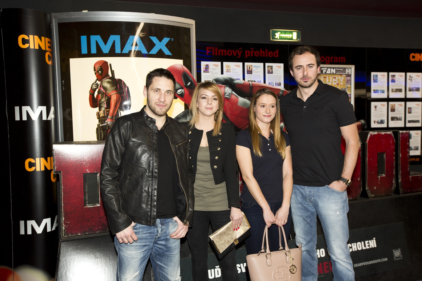 Na největším plátně v České republice, kině IMAX, se konala slavnostní premiéra filmu Deadpool. Na tento film byli zvědaví nejen kritici, ale i známé české tváře. Promítání tohoto snímku navštívila i vždy usměvavá Petra Černocká, která miluje filmy mnoha žánrů, a tak se nezalekla i této akční komedie. Možná dvojité rande si na večer naplánovali kamarádi a kolegové z divadla Martin Písařík a Miroslav Hrabě, kteří přišli v doprovodu dvou krásných dam.