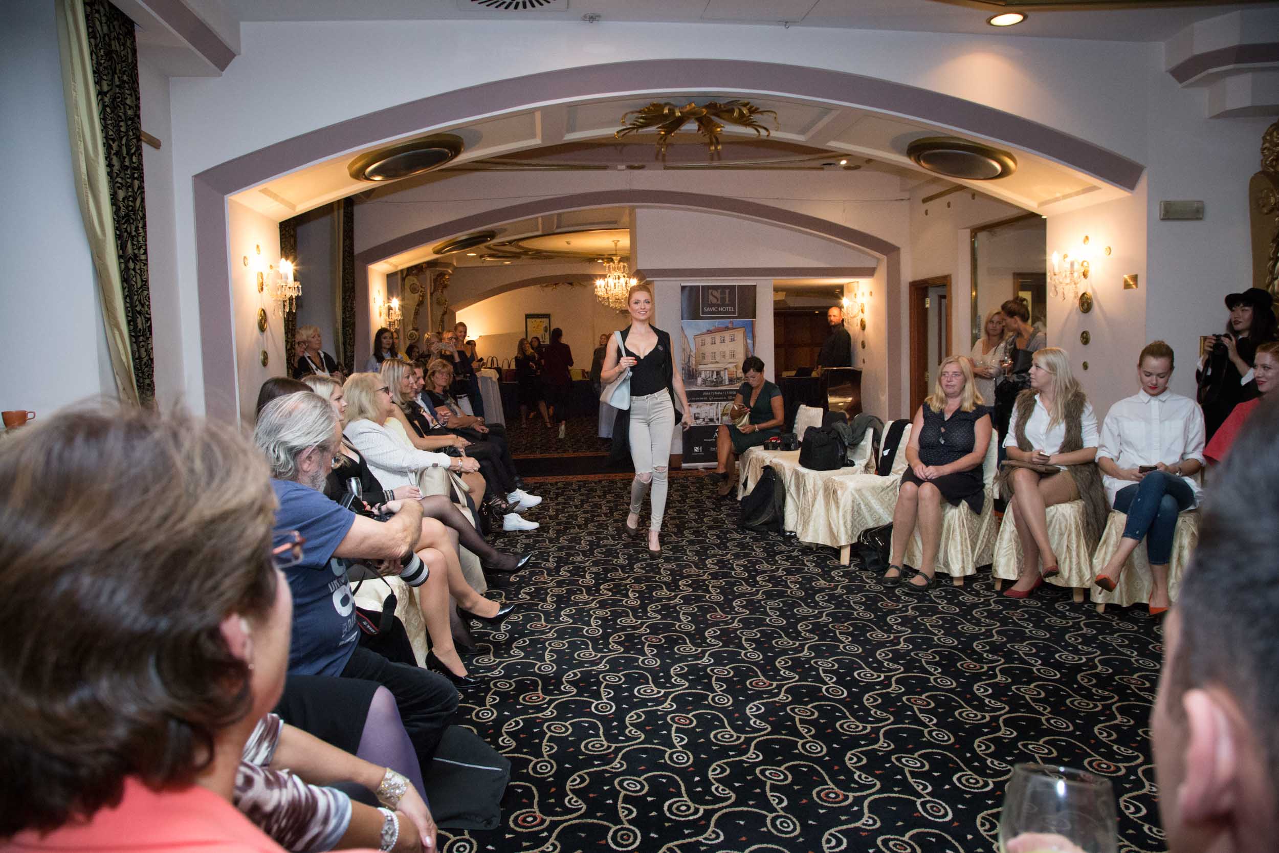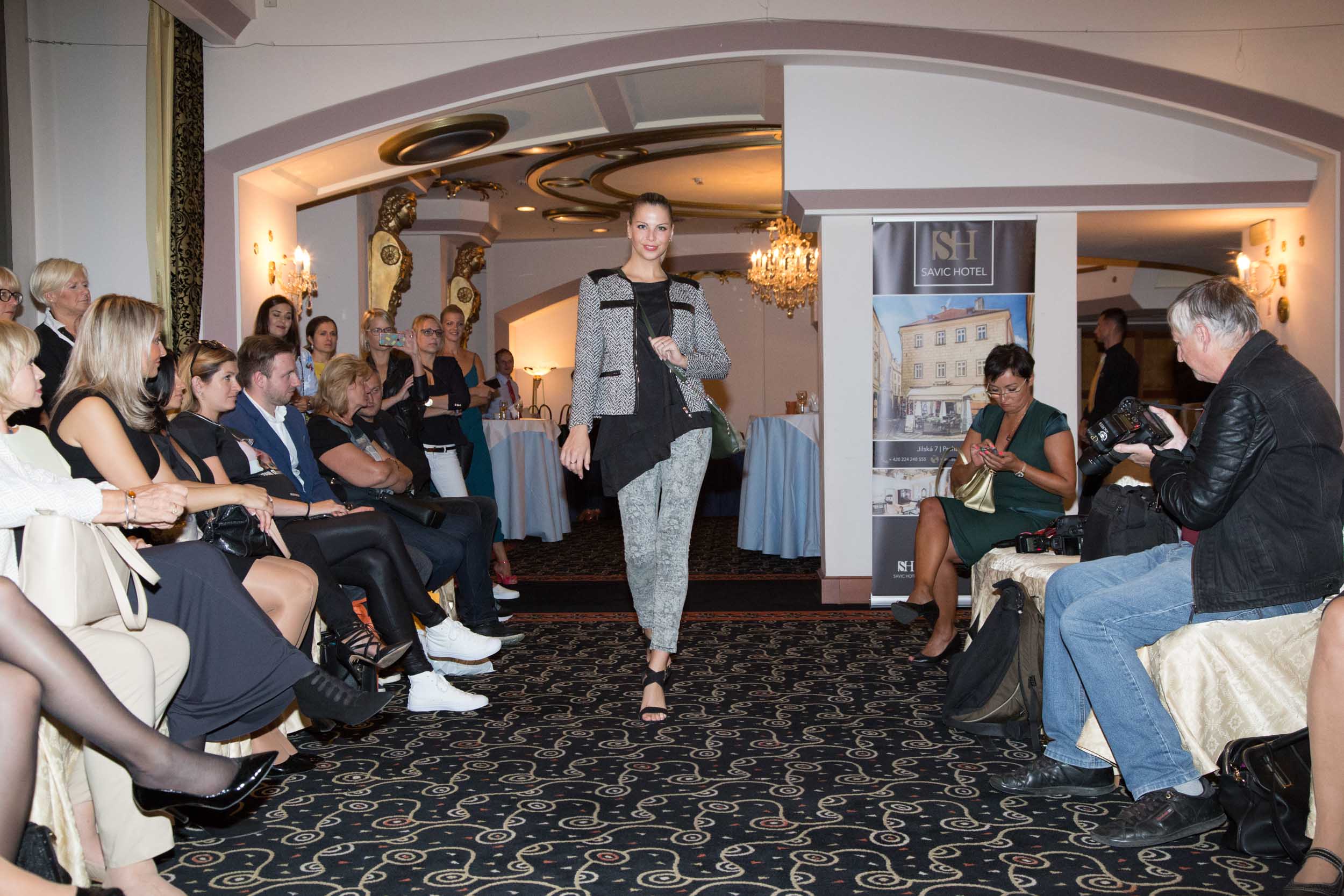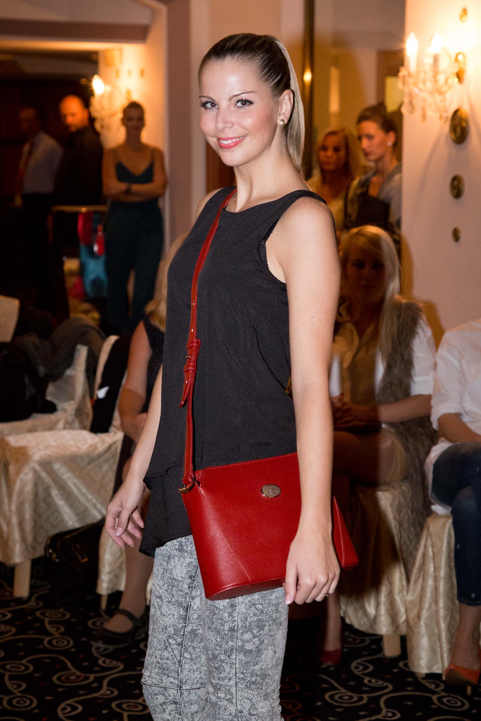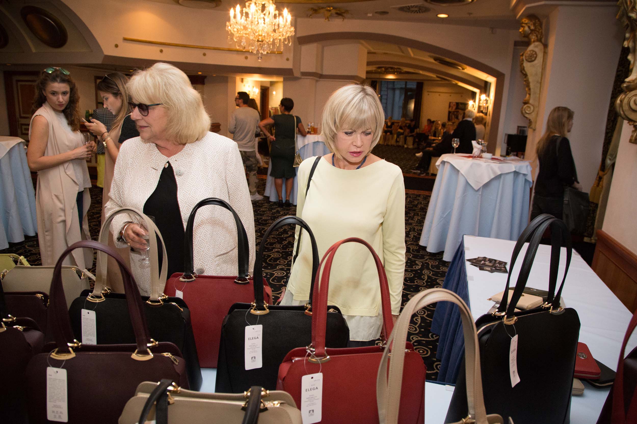 Poprvé od porodu se na přehlídkovém mole objevila i modelka Romana Pavelková, která svůj večírkový outfit od kamarádky Lussi Bugner doplnila jedním z nejhezčích kousků předcházející kolekce Elega by Dana M. Stejné psaníčko si na akci vzala i moderátorka Top Star magazínu Eva Perkausová. Holky to vzaly s nadhledem, vzniklé situaci se zasmály a ještě dobrovolně zapózovaly fotografům. Ze Švýcarska dorazila i Česká Miss Veronika Machová, která se nemohla nabažit kabelek s kožešinou.